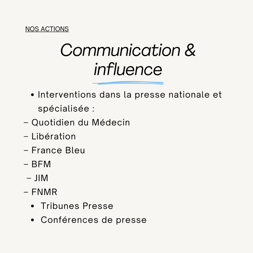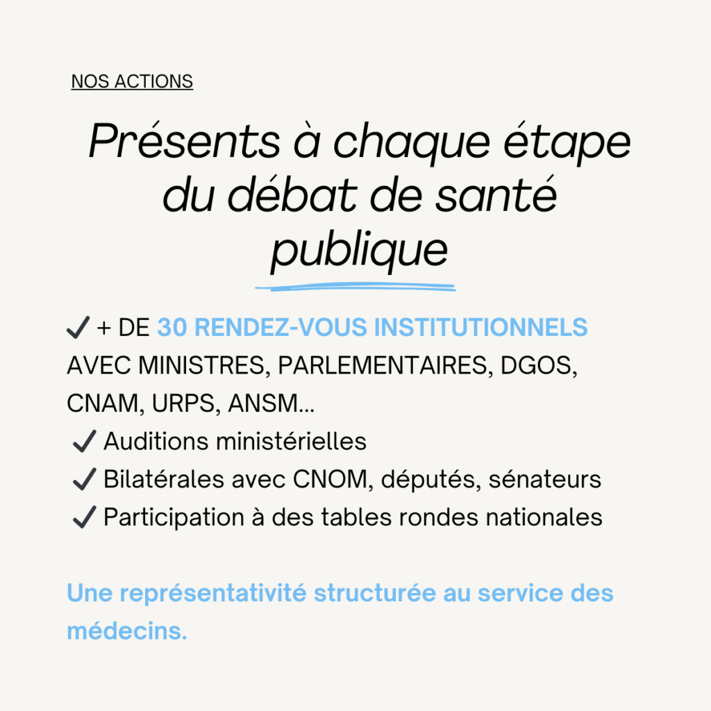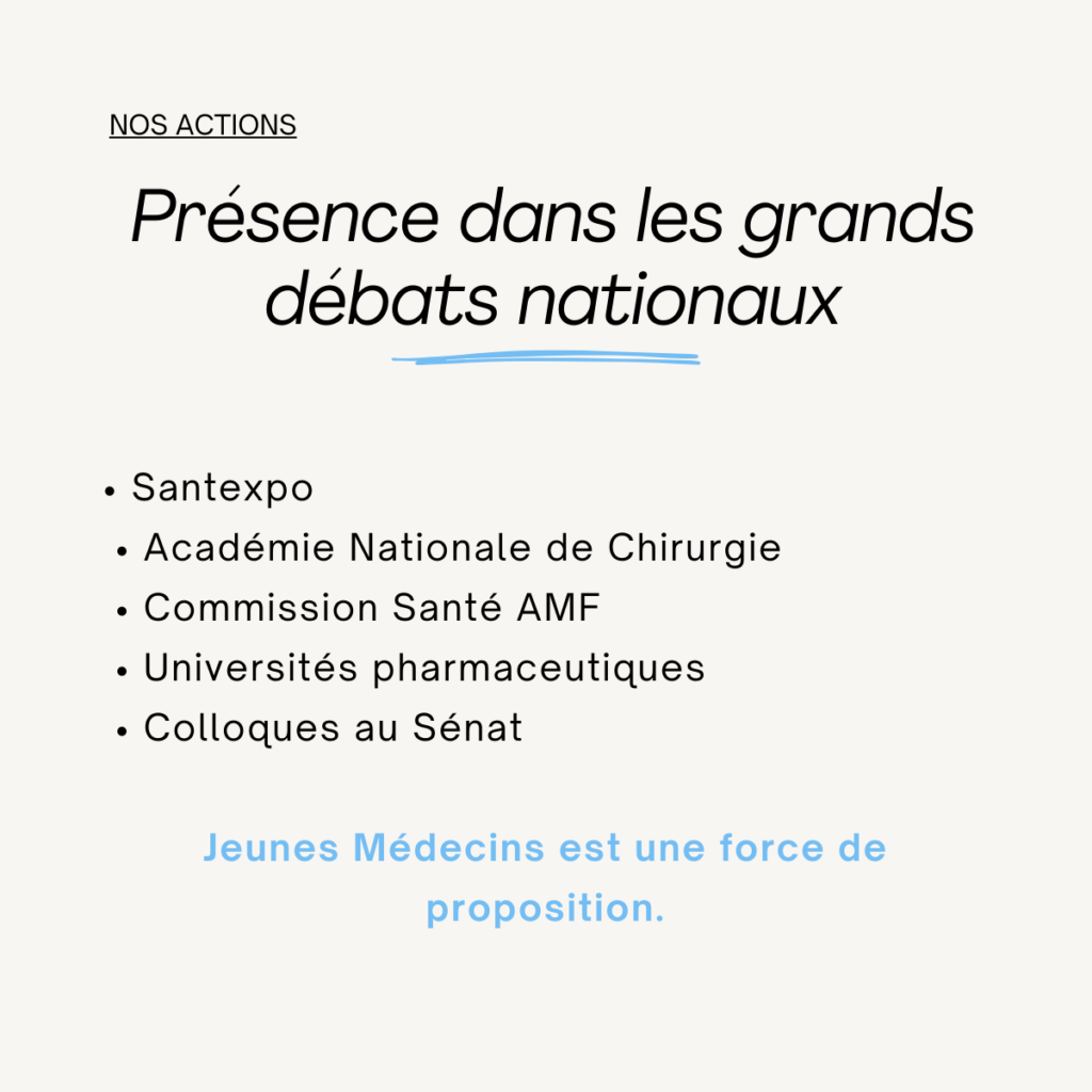 Jeunes Médecins agit sur l’ensemble des enjeux qui impactent l’exercice médical.
