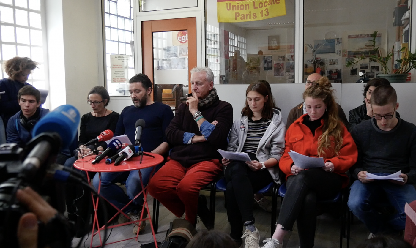 “Ça va bientôt commencer !” Dans ce petit local du 13e arrondissement de Paris, c’est l’effervescence. Ici, juste en face d’un commissariat, le collectif des 34 interpellés de la Pitié-Salpêtrière s’est réuni pour donner sa première conférence de presse.Après une petite demie-heure de retard, une dizaine de membres du collectif pointent le bout de leur nez et s’assoient en face des journalistes. Les plus jeunes, des étudiants d’une vingtaine d’année, ont l’air abattu. “Il n’y aura pas de questions collectives, mais des entretiens individuels à la fin !” fait-on savoir d’emblée.